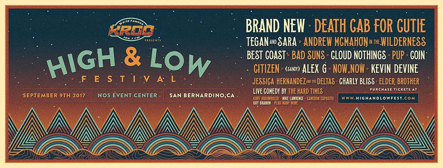 Brand New, Death Cab for Cutie, Tegan and Sara, Andrew McMahon in the Wilderness, Best Coast, Bad Suns, Cloud Nothings, PUP, COIN, Citizen, (Sandy) Alex G, Now, Now, Kevin Devine, Jessica Hernandez and the Deltas, Charly Bliss, and more.