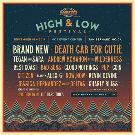 Brand New, Death Cab for Cutie, Tegan and Sara, Andrew McMahon in the Wilderness, Best Coast, Bad Suns, Cloud Nothings, PUP, COIN, Citizen, (Sandy) Alex G, Now, Now, Kevin Devine, Jessica Hernandez and the Deltas, Charly Bliss, and more.
